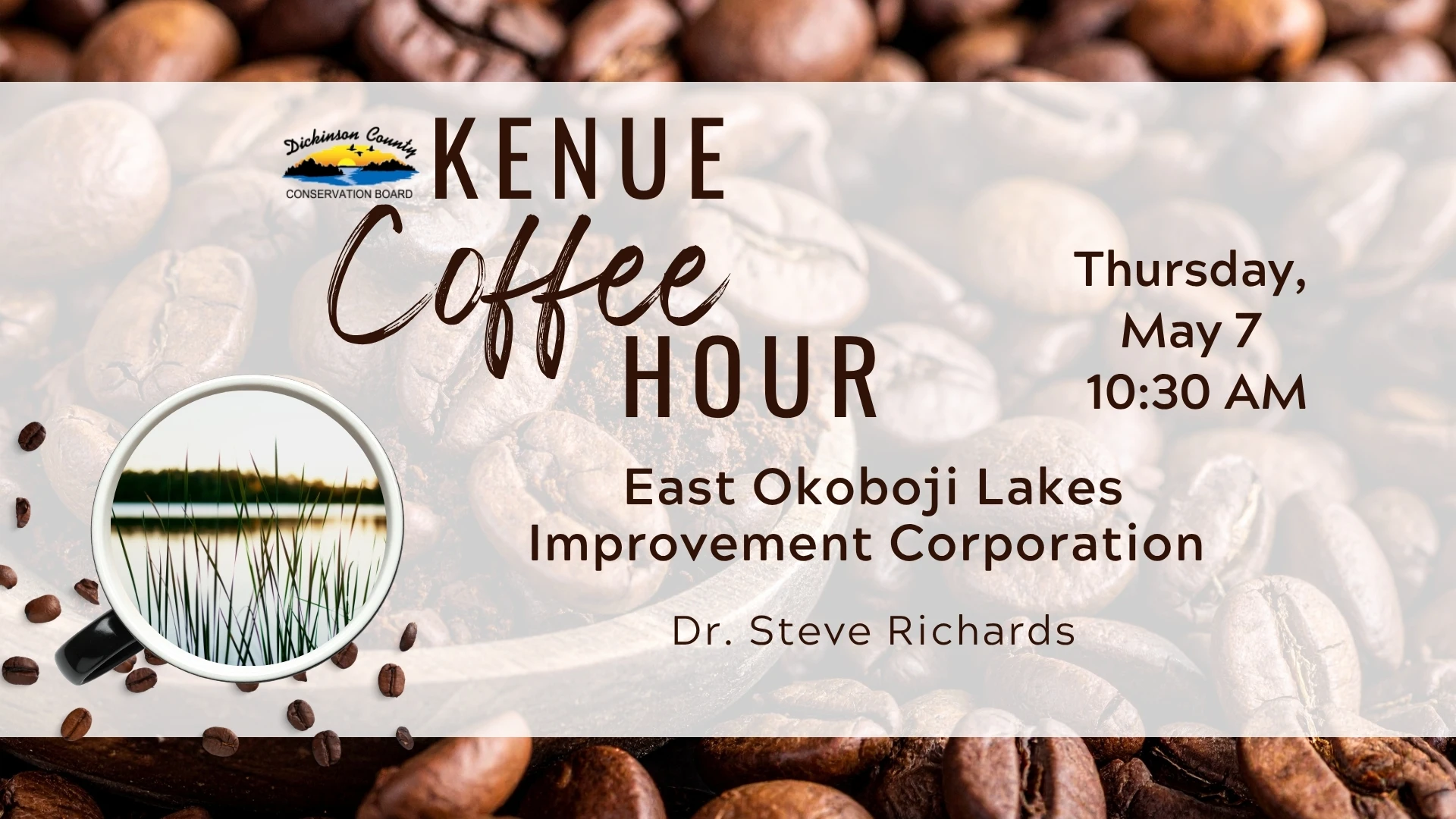 Hosted by the Dickinson County Nature Center, Kenue Coffee Hour is a free monthly program designed for adults to connect, learn, and enjoy conversation in a relaxed setting. Each session features a different topic related to conservation or nature.