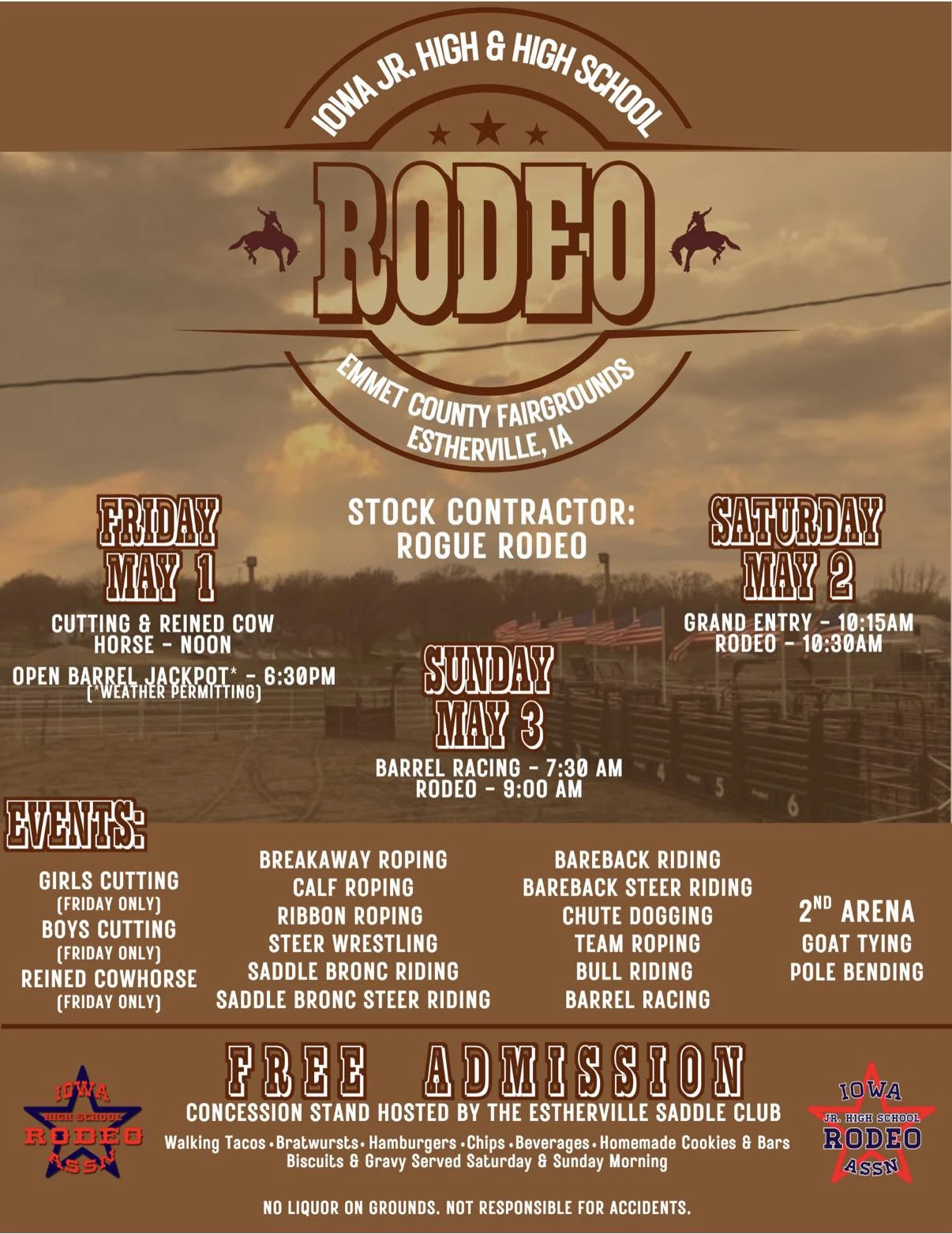 (Estherville)--The annual Estherville High School and Junior High Rodeo will be held this Friday, Saturday and Sunday at the Emmet County Fairgrounds. One of the competitors will be Levi Allen of Algona.